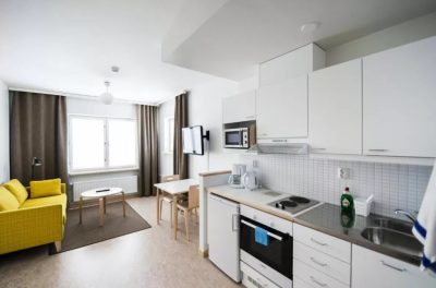 ROOM TYPES: Small single room, 14m2, Standard studio,17m2, Studio superior, 28,5m2, Queen studio, 25m2, Twin studio, 34m2, One bedroom flat,small, 35m2, One bedroom flat, large, 46m2, King studio with balcony, 35m2, Penthouse, 37m2, Two bedroom flat, 65,5 m2, Two bedroom flat economy, 55m2, Terraced house, 120m2.